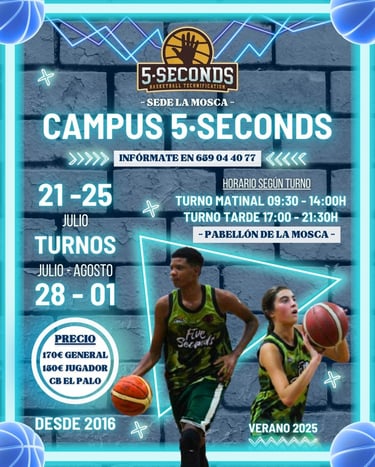 En 2019 nació 5-Seconds para cumplir el sueño de gran cantidad de niños y niñas en categorías de formación en Málaga y alrededores: convertirse en mejores jugadores de baloncesto. 6 ediciones después, más de 1.500 personas lo han conseguido.
